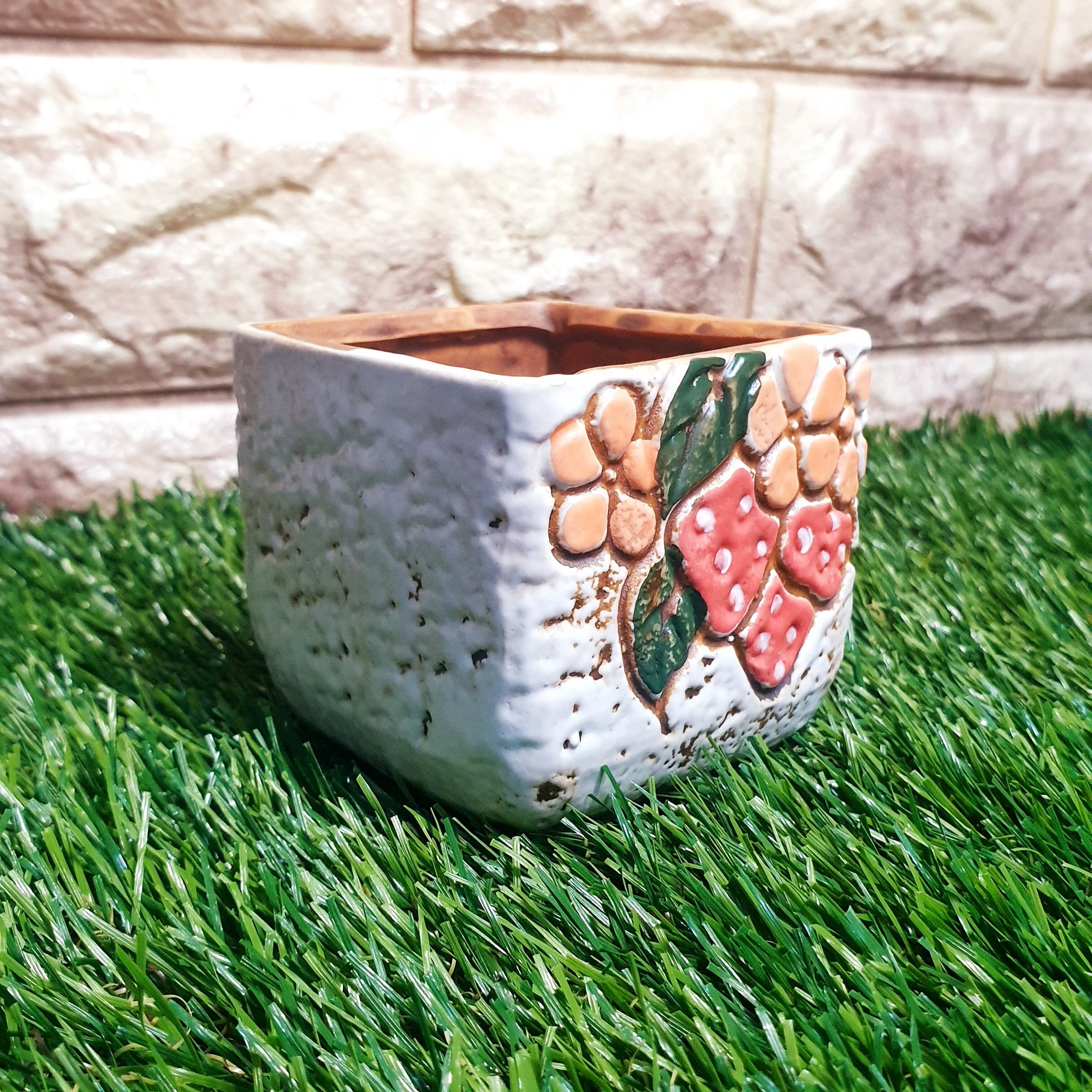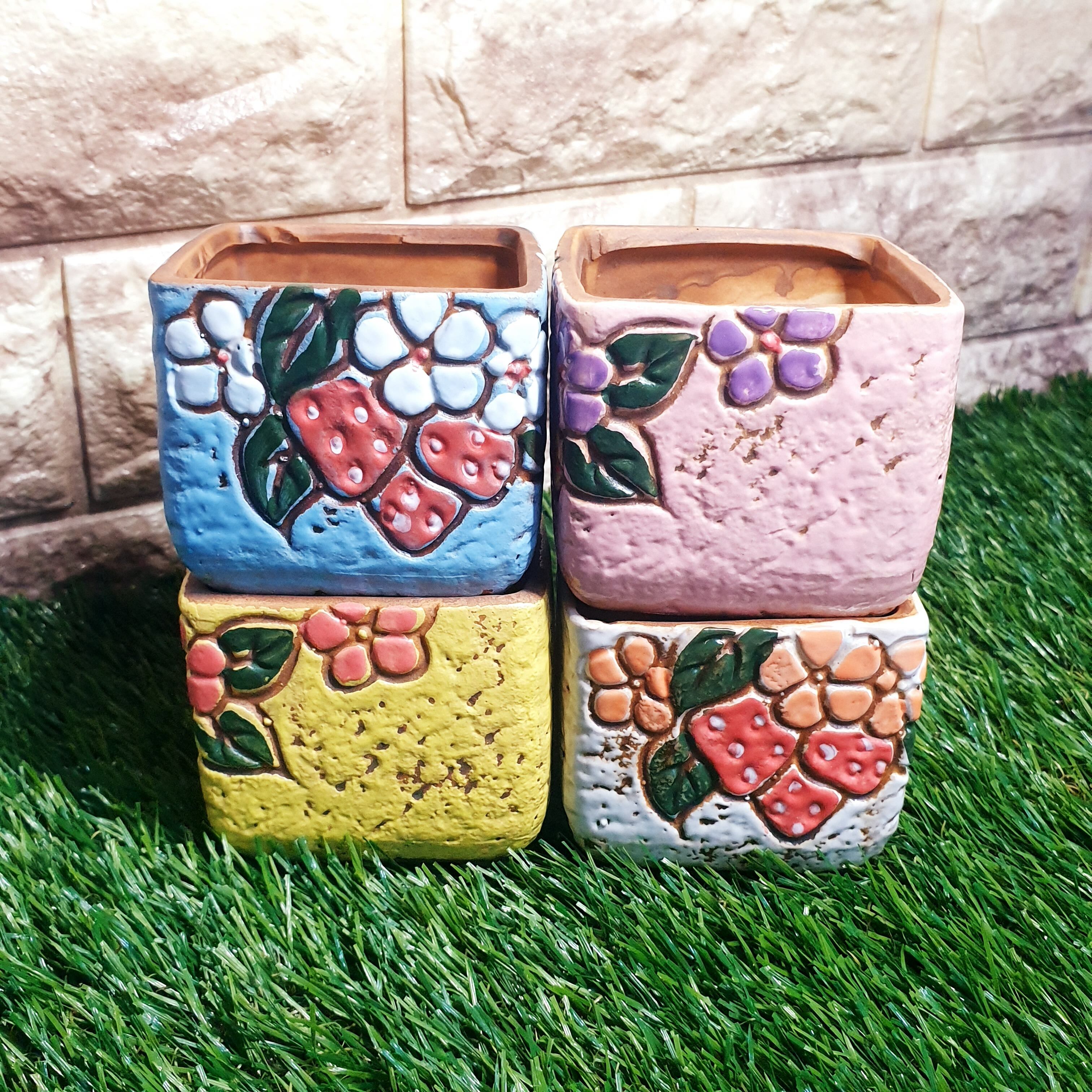 【4色セット】植物をさらに可愛く♡大人気! 韓国発 いちご柄ポット 四角形タイプ