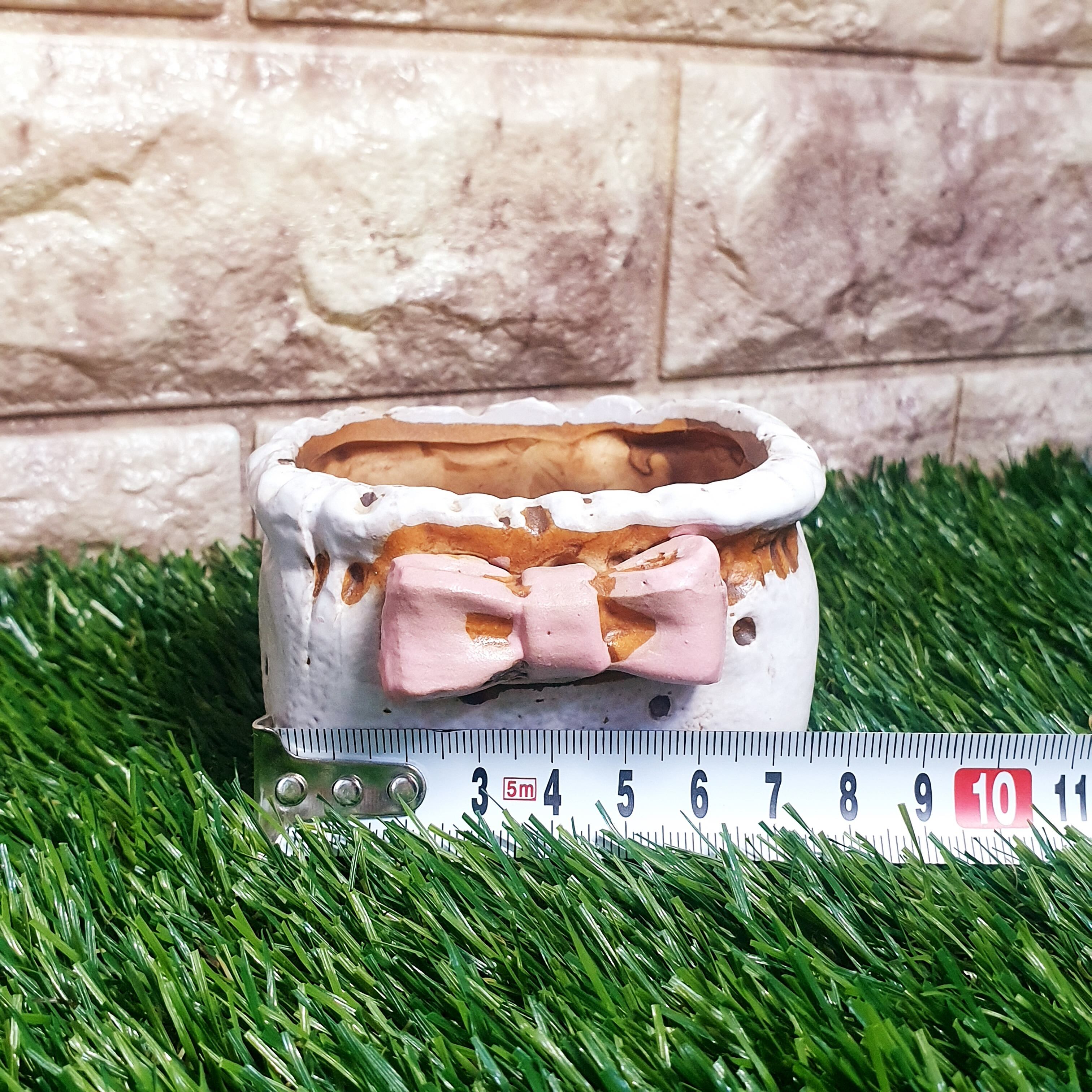 多肉ポット 植木鉢 小物入れに♡韓国発 キュートなリボンポット 白ベース×ピンクリボン