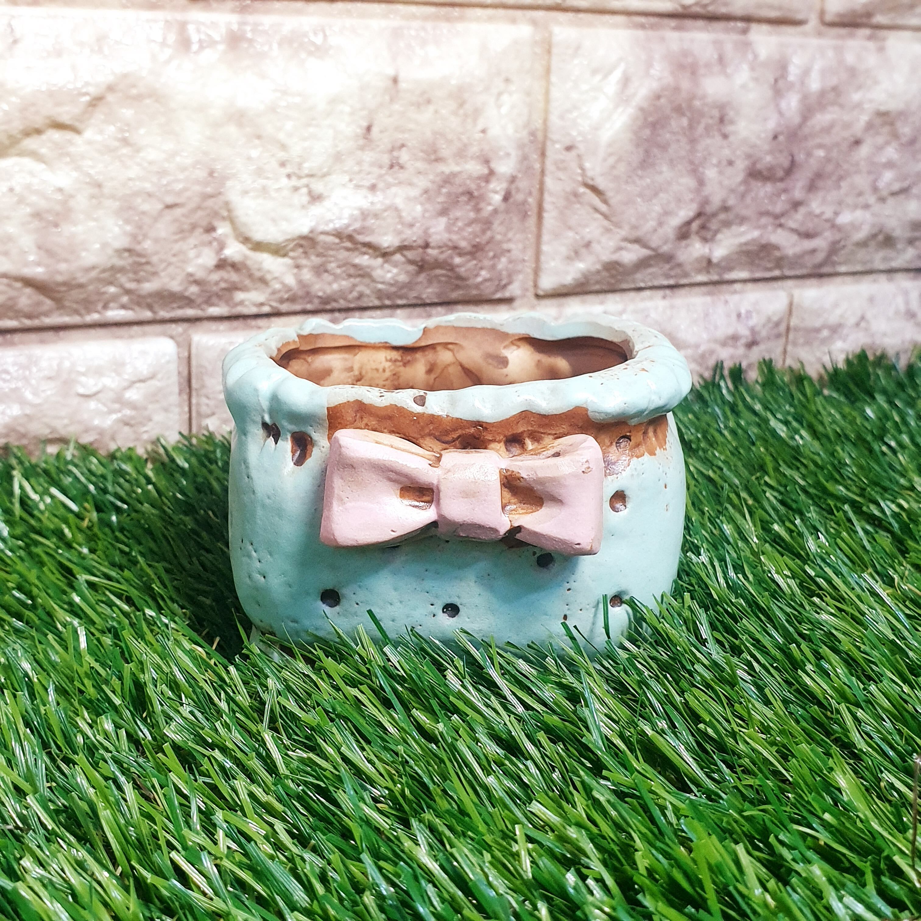 多肉ポット 植木鉢 小物入れに♡韓国発 キュートなリボンポット 緑ベース×ピンクリボン