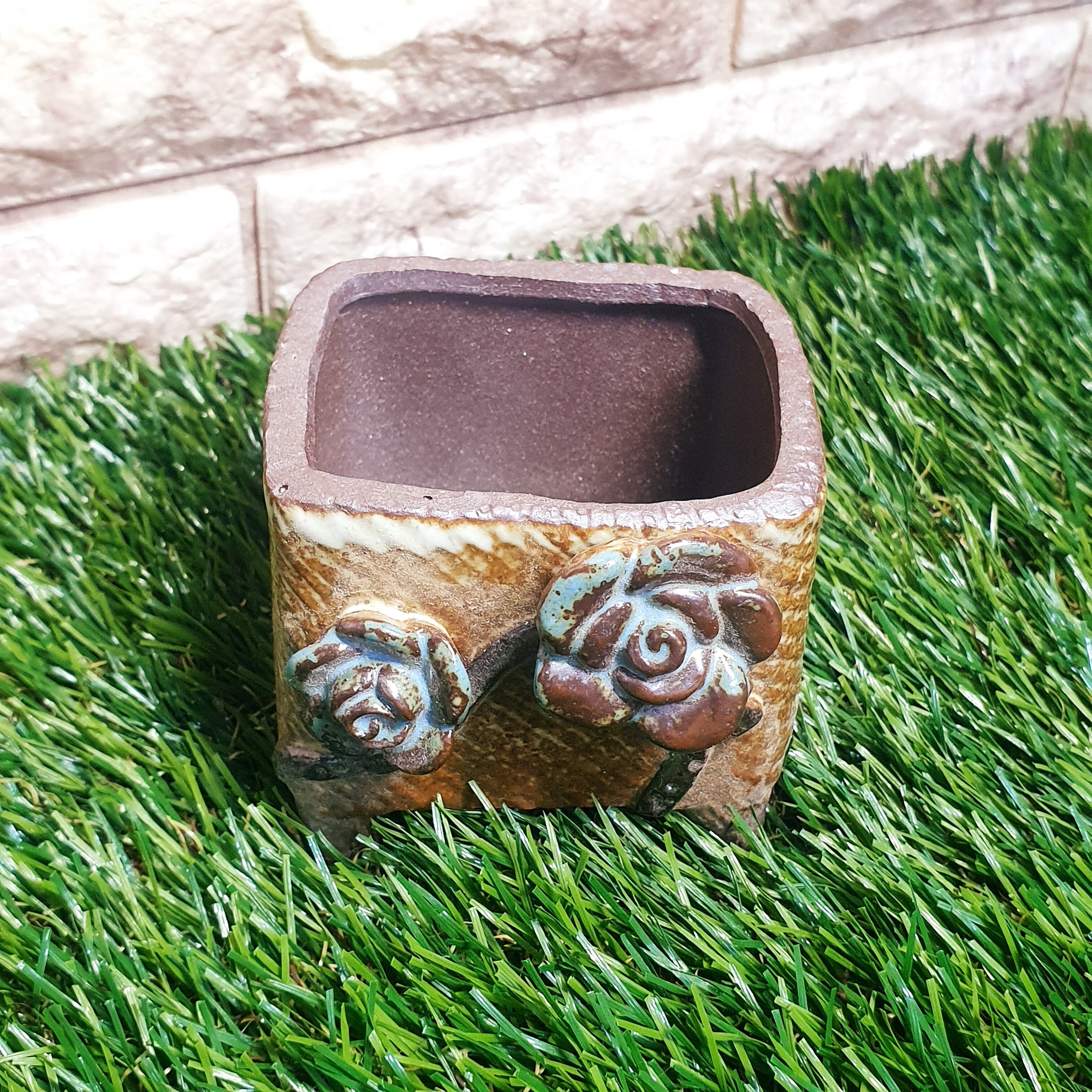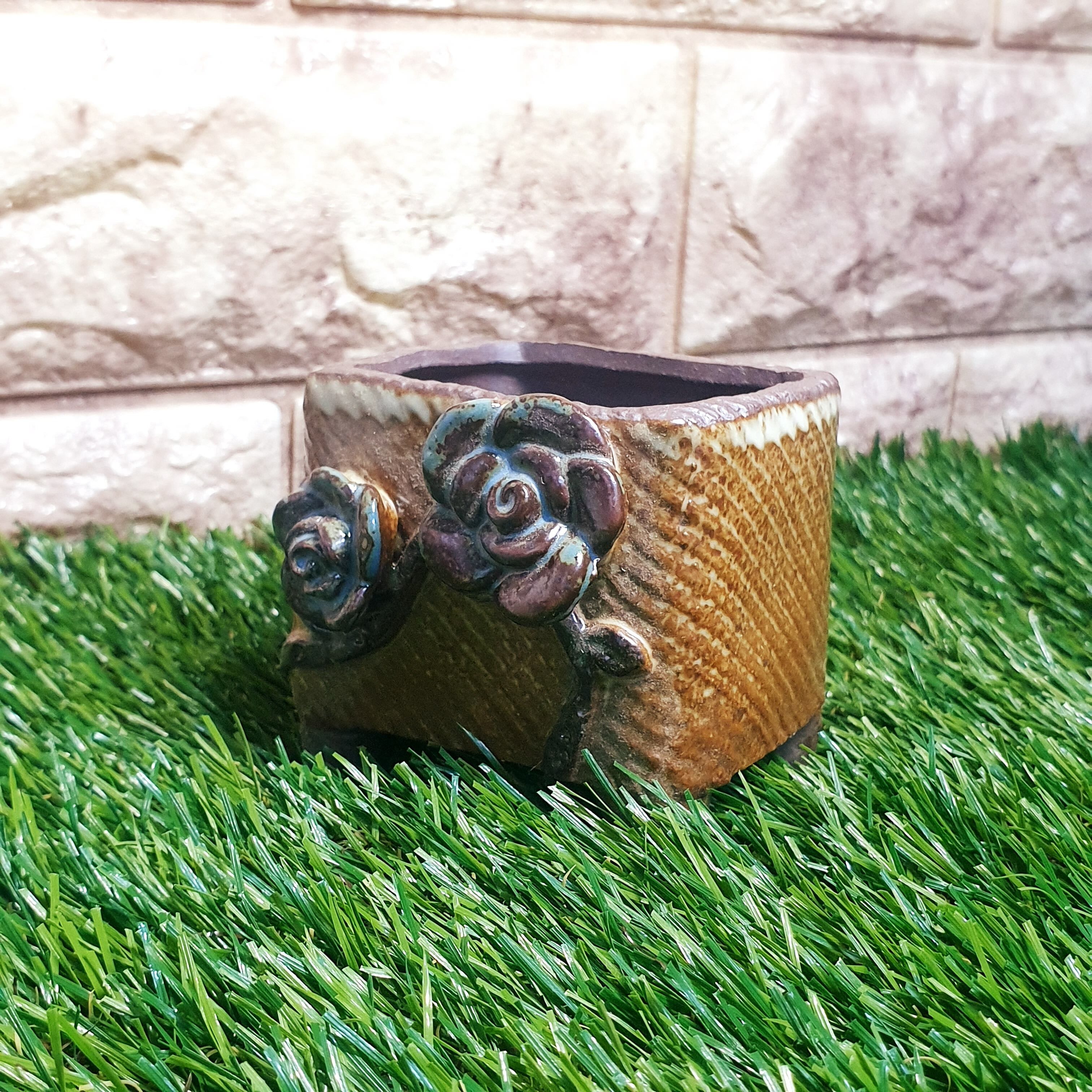 大人っぽい雰囲気を演出するバラ柄ポットです。