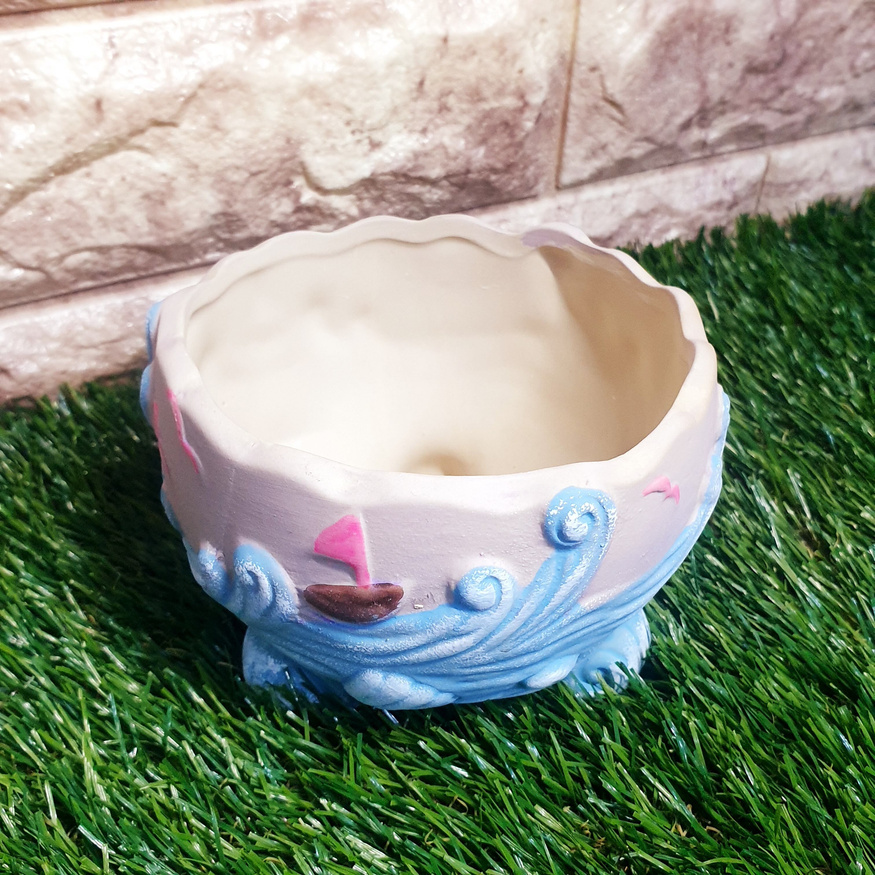 多肉の寄せ植えに◎大き目韓国鉢 さわやか海柄☆彡 水色
