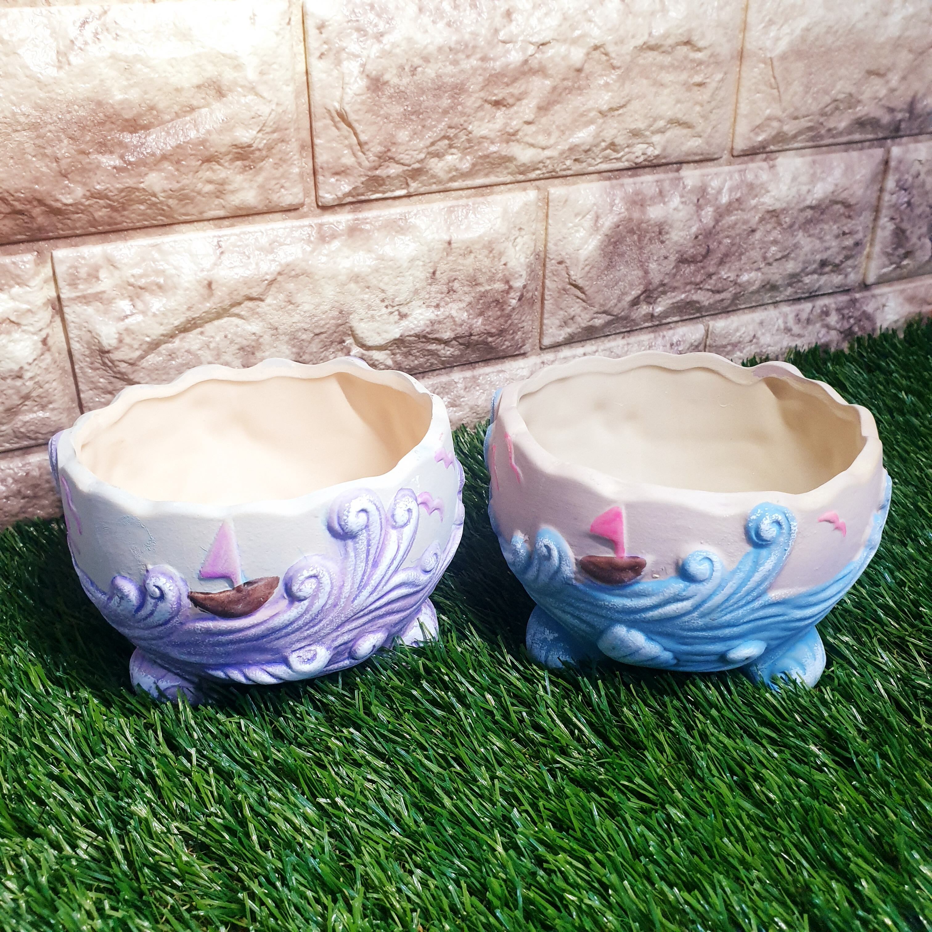 【2点セット】多肉の寄せ植えに◎大き目韓国鉢 さわやか海柄☆彡