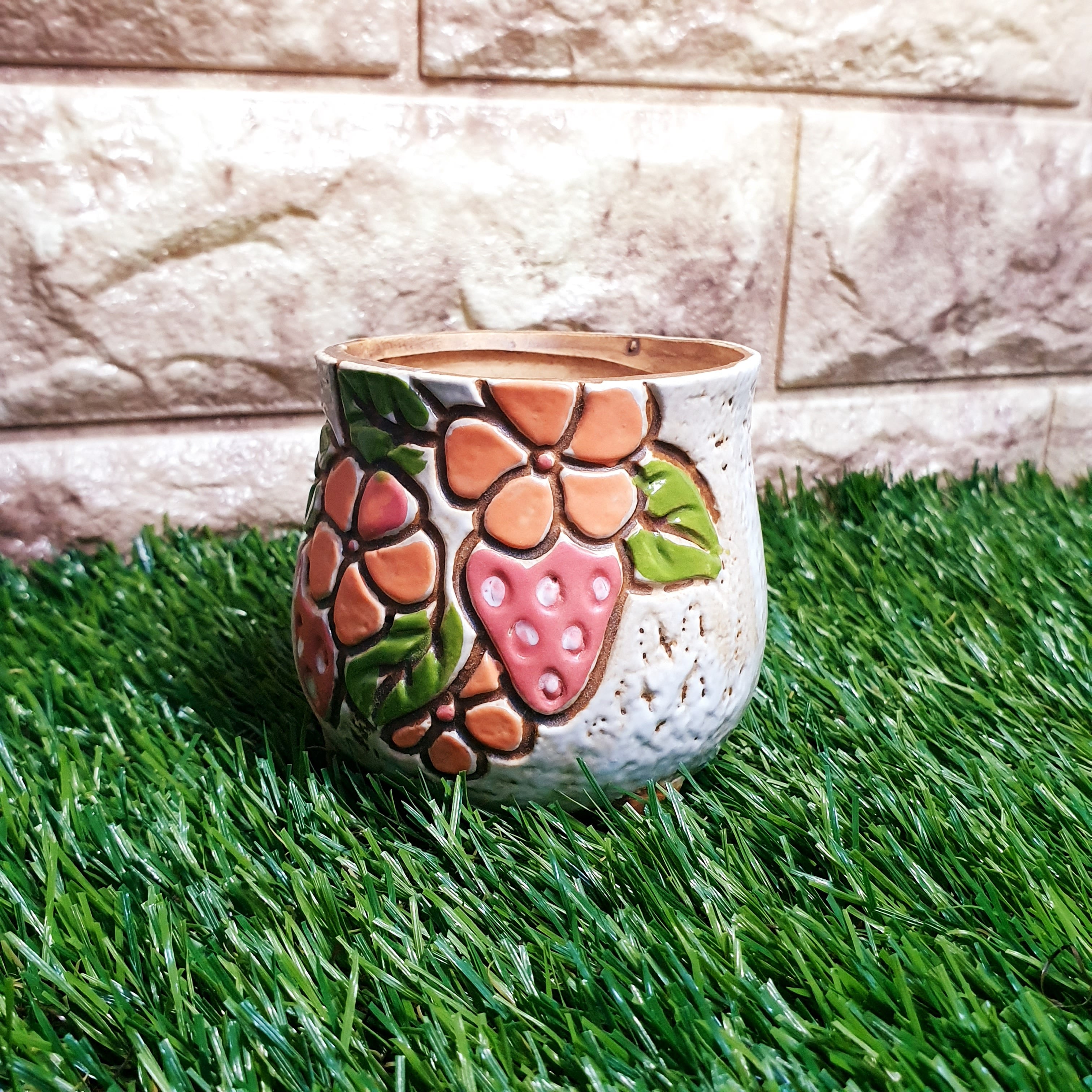 多肉がさらに可愛く♡韓国発 いちご柄ポット 丸形タイプ クリーム