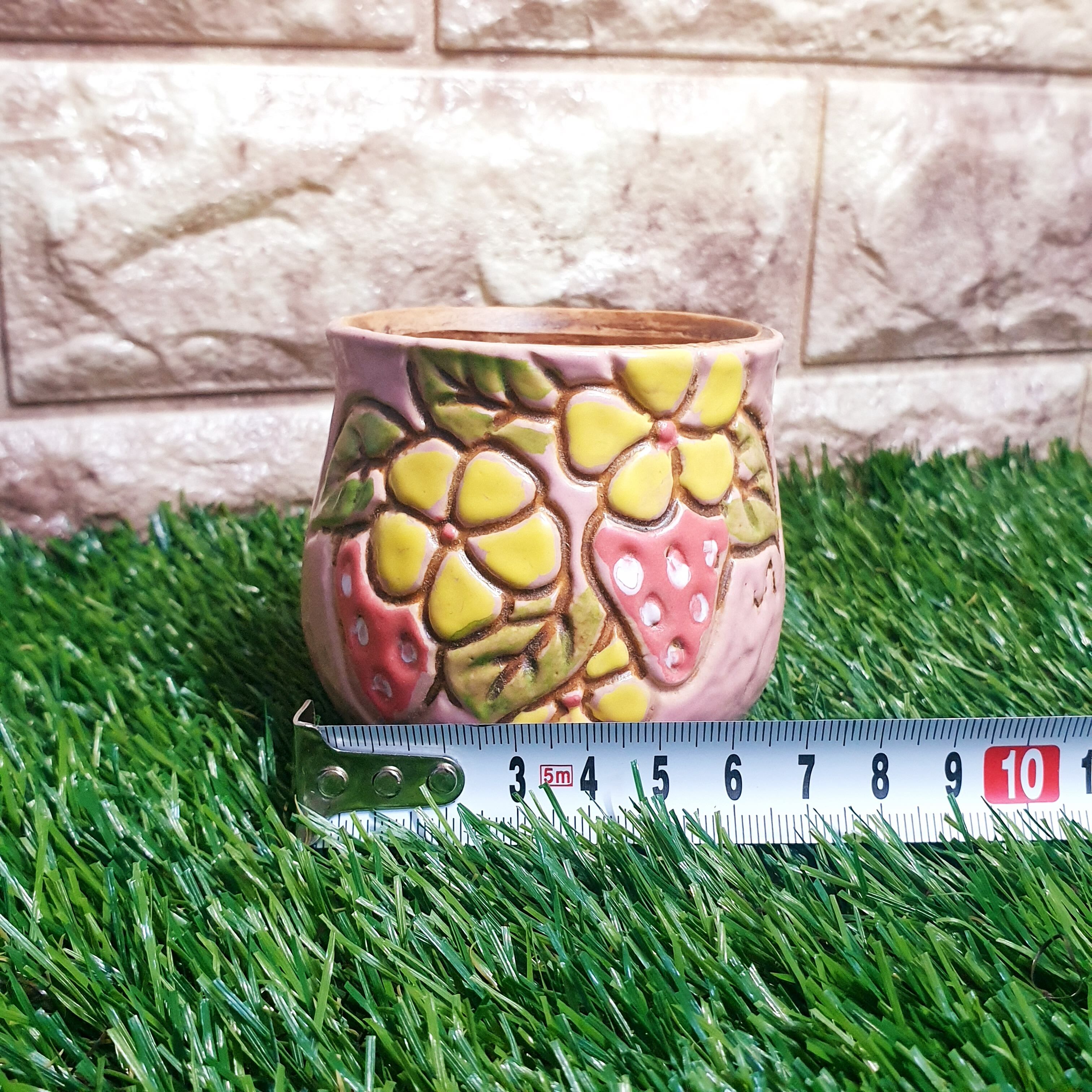 多肉がさらに可愛く♡韓国発 いちご柄ポット 丸形タイプ ピンク