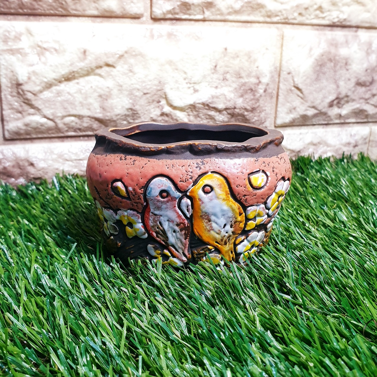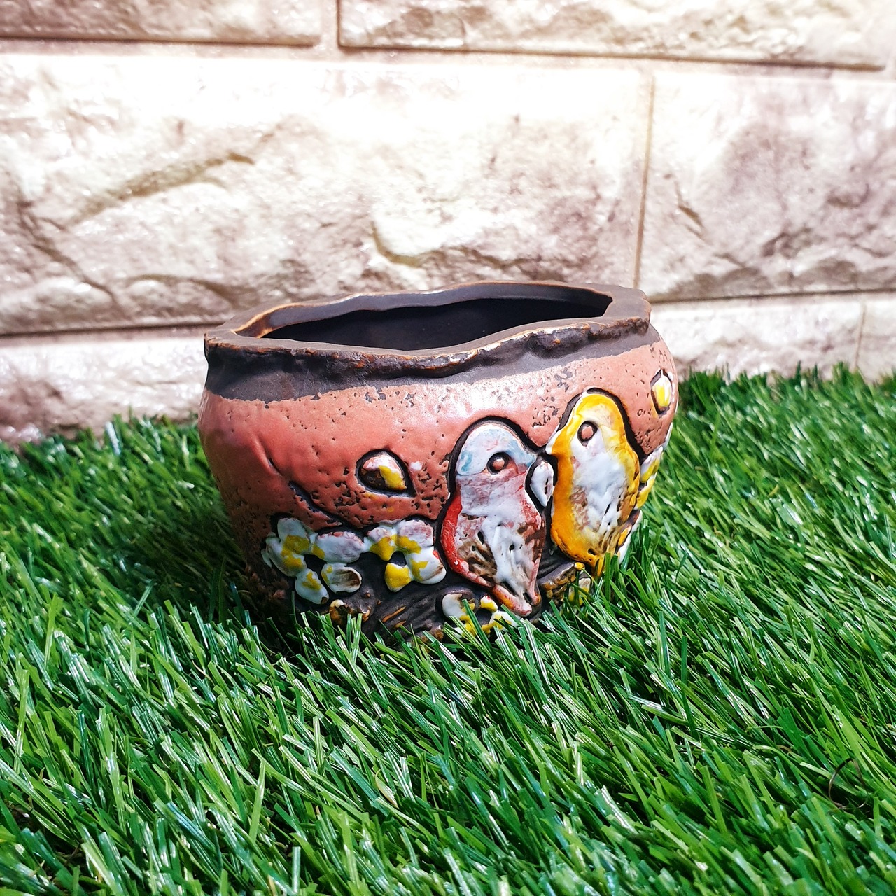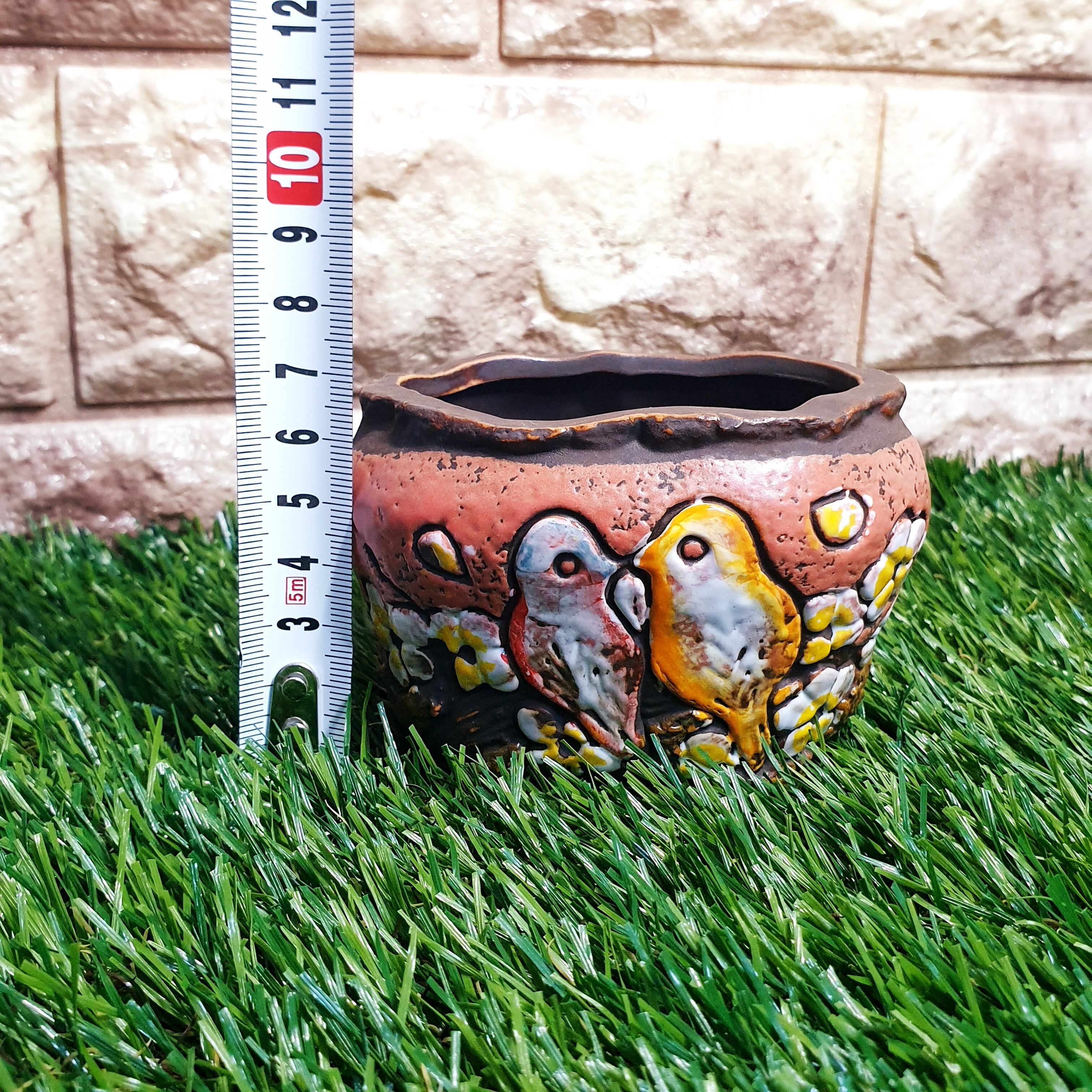 多肉ポット 植木鉢 小物入れに♡韓国発 可愛いことり柄◎ポット 赤色