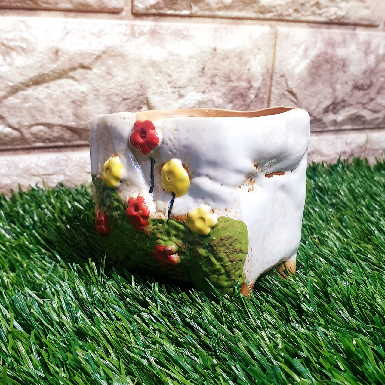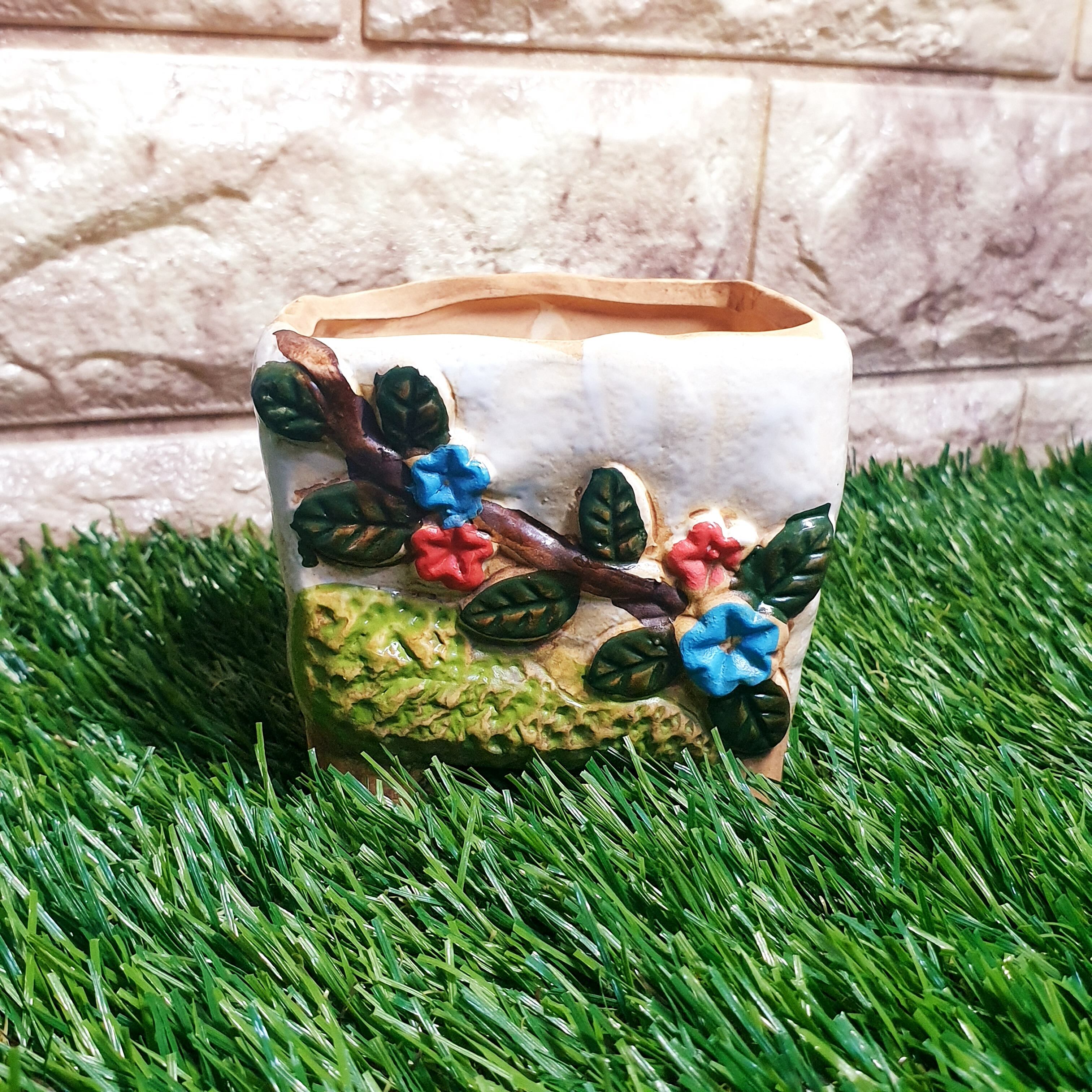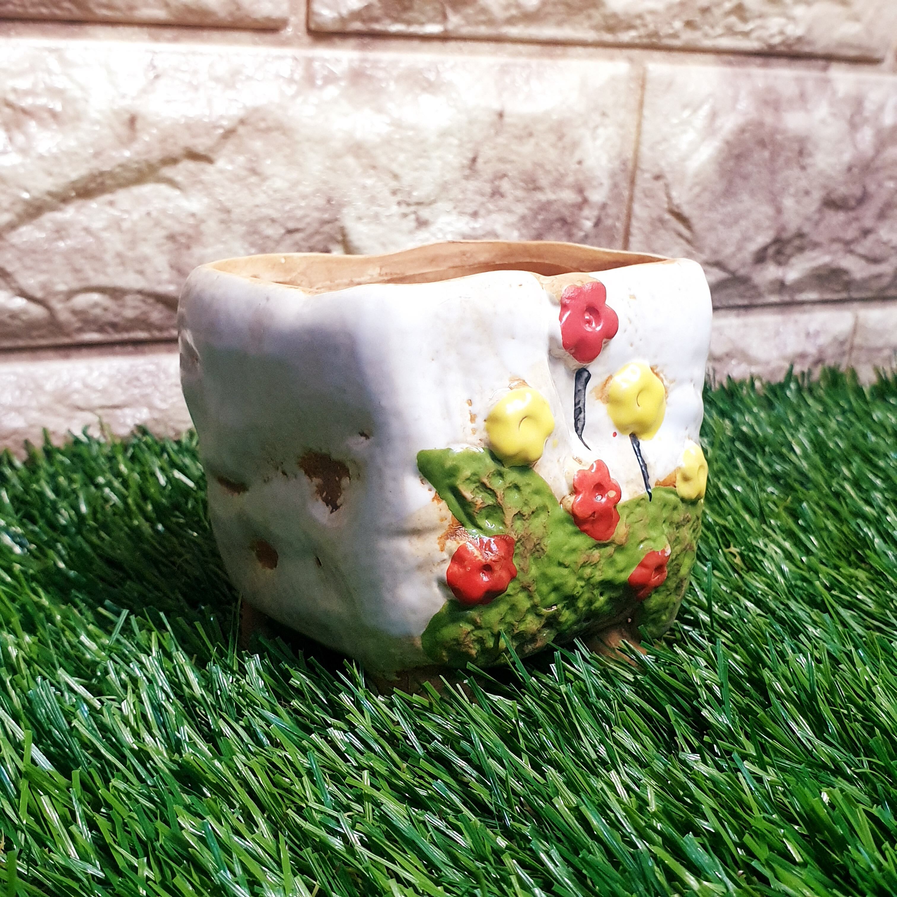 人気の花柄多肉ポット、クリーム色の6種セットです♪