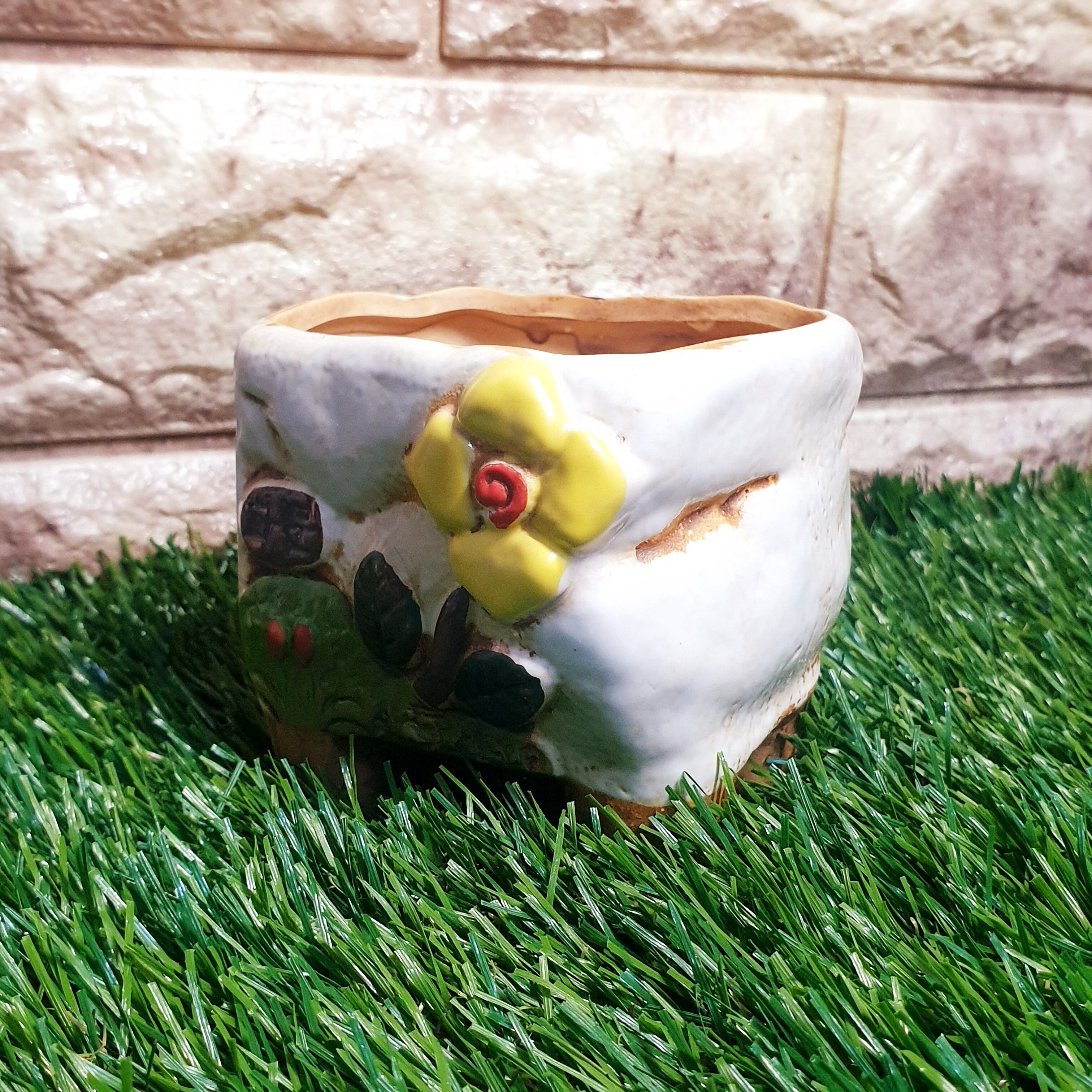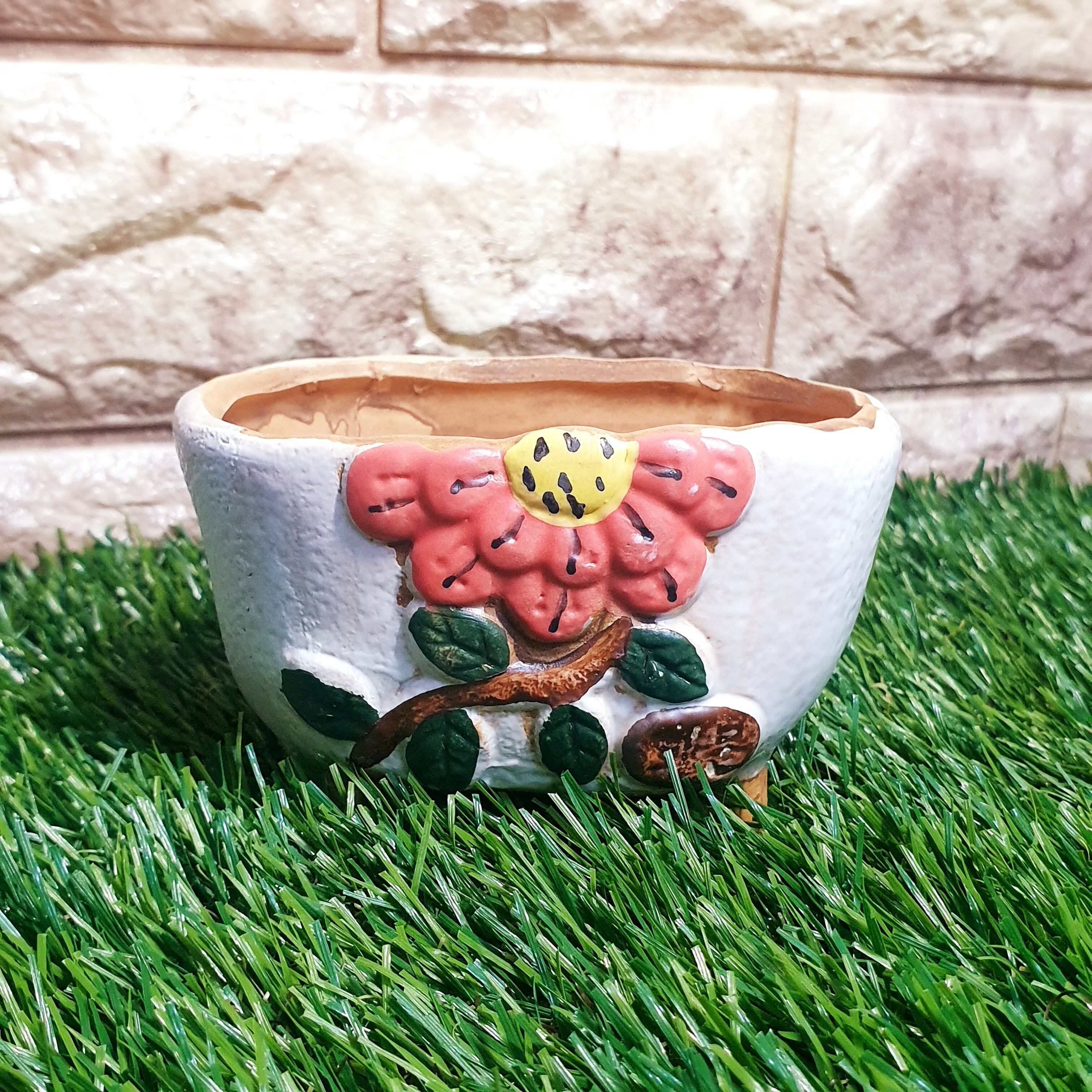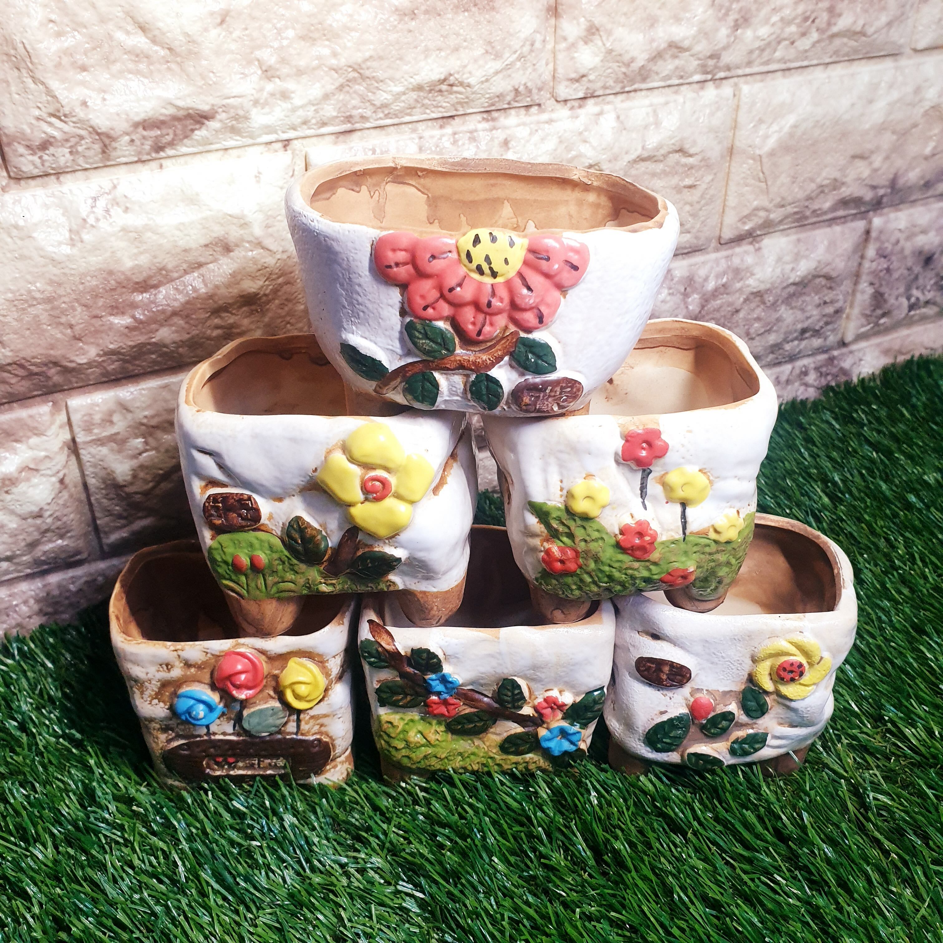 【6種セット】多肉ポット 植木鉢に最適♪韓国発 大人気 花柄ポット クリーム色
