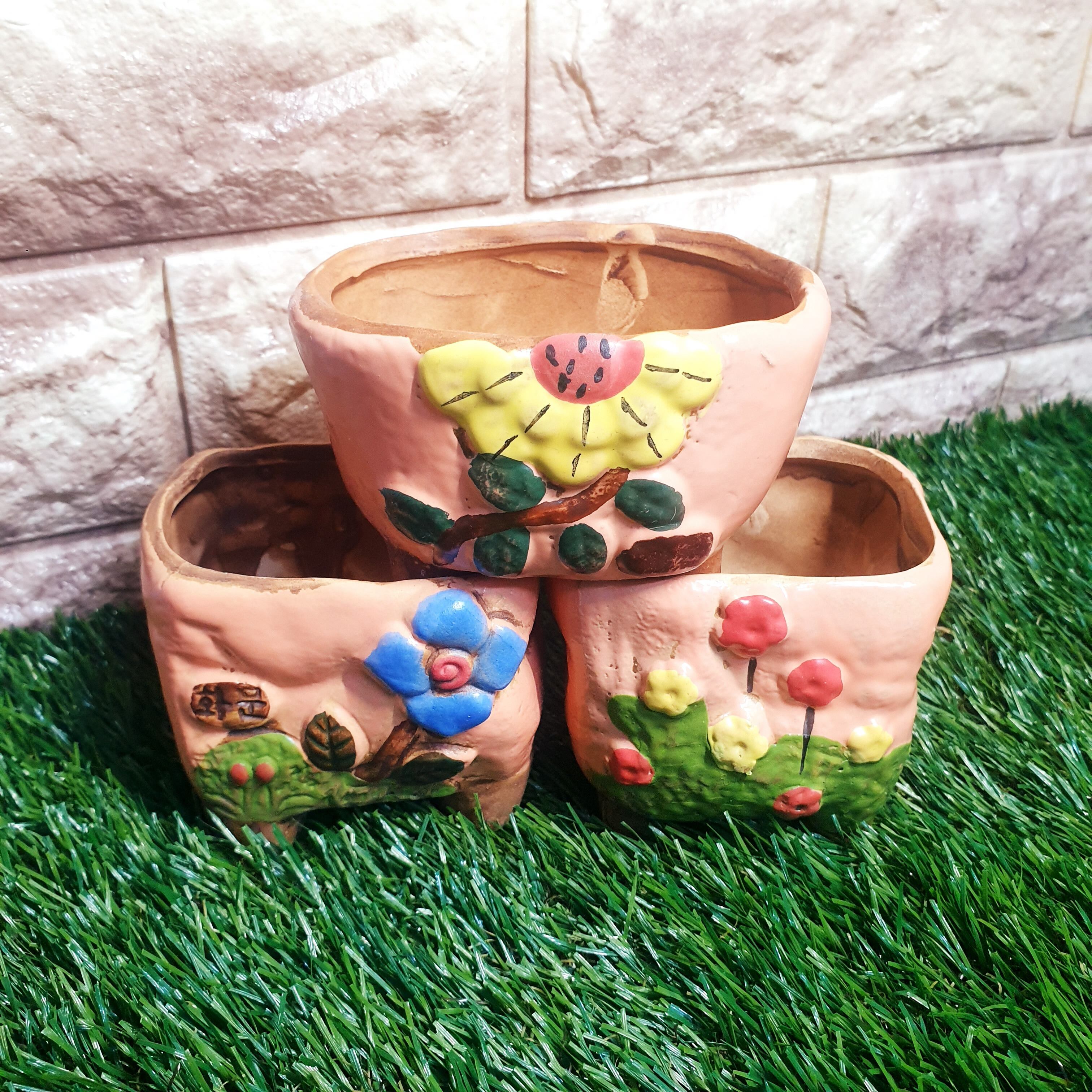 人気の花柄多肉ポット、サーモンピンクのランダム3点セットです♪