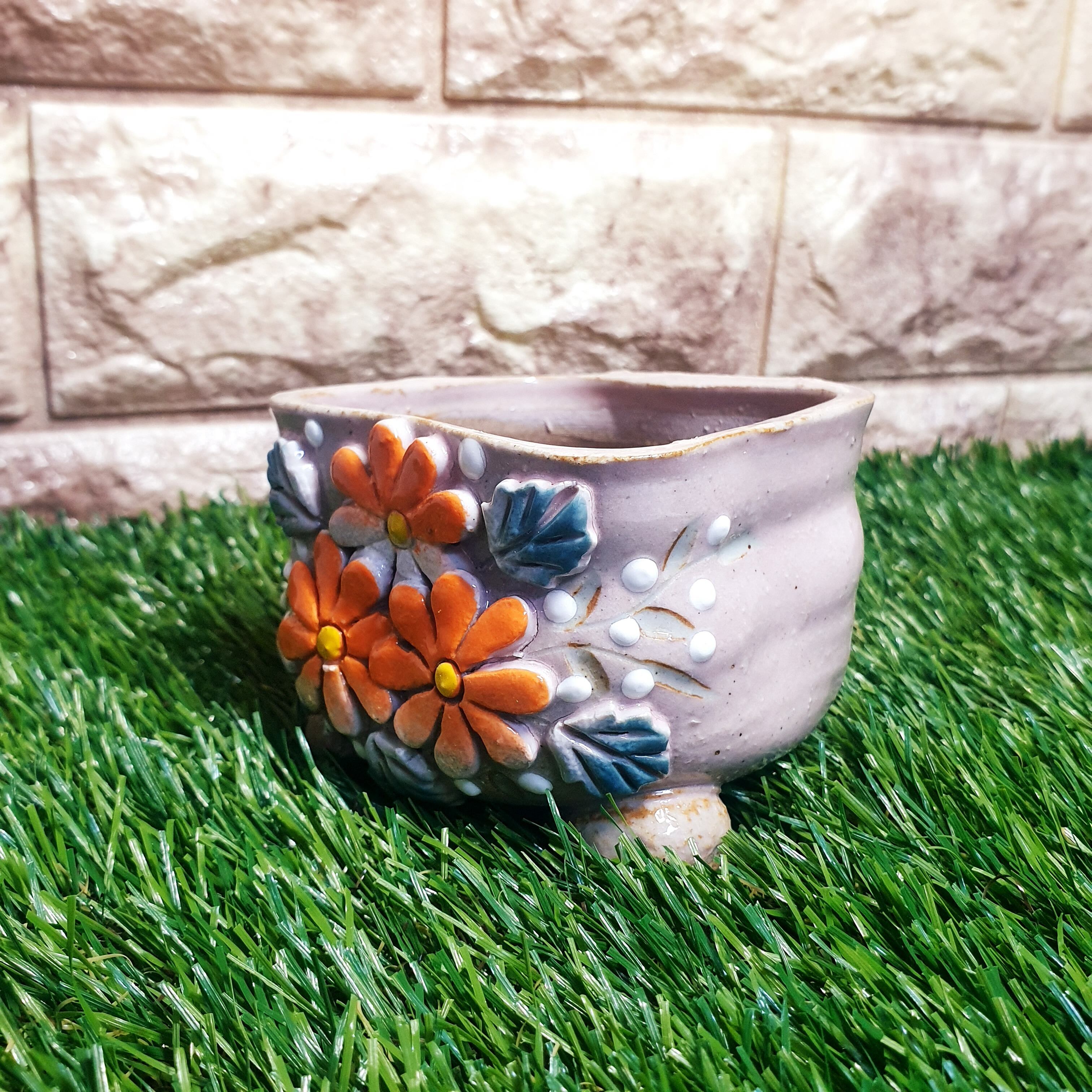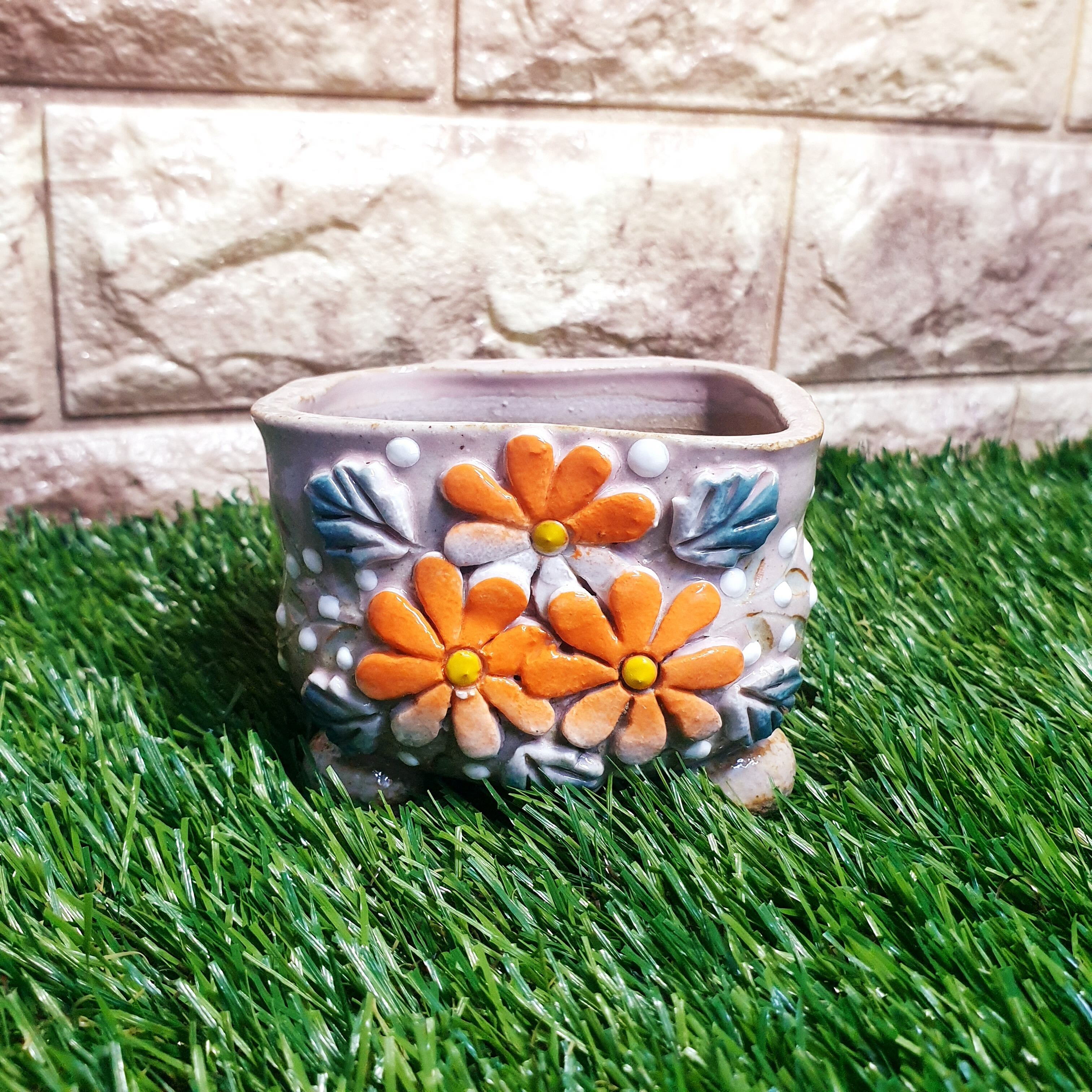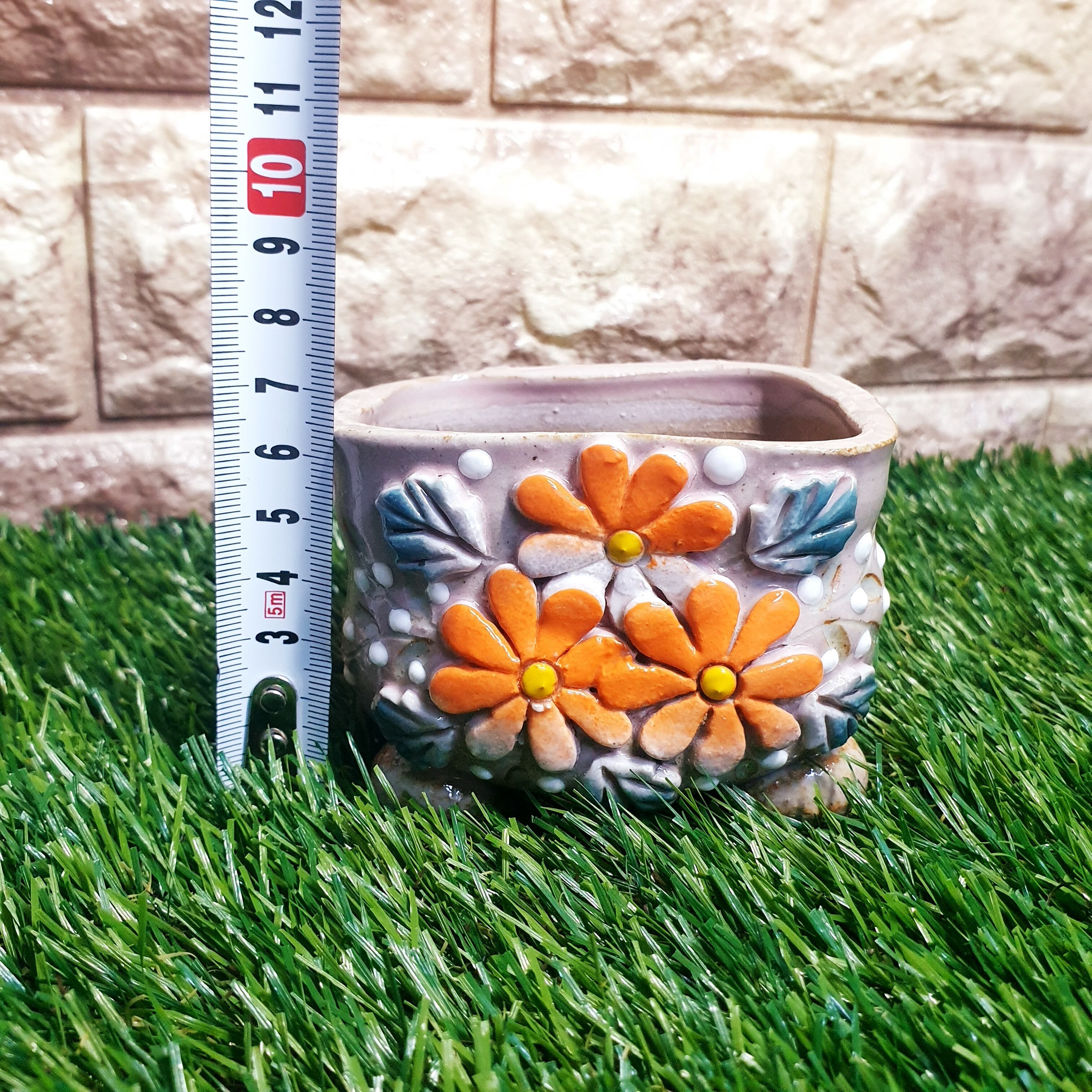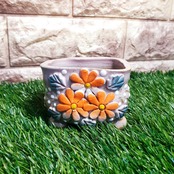 多肉ポット 植木鉢 小物入れに♡韓国発 花柄✽ポット 四角タイプ オレンジ花