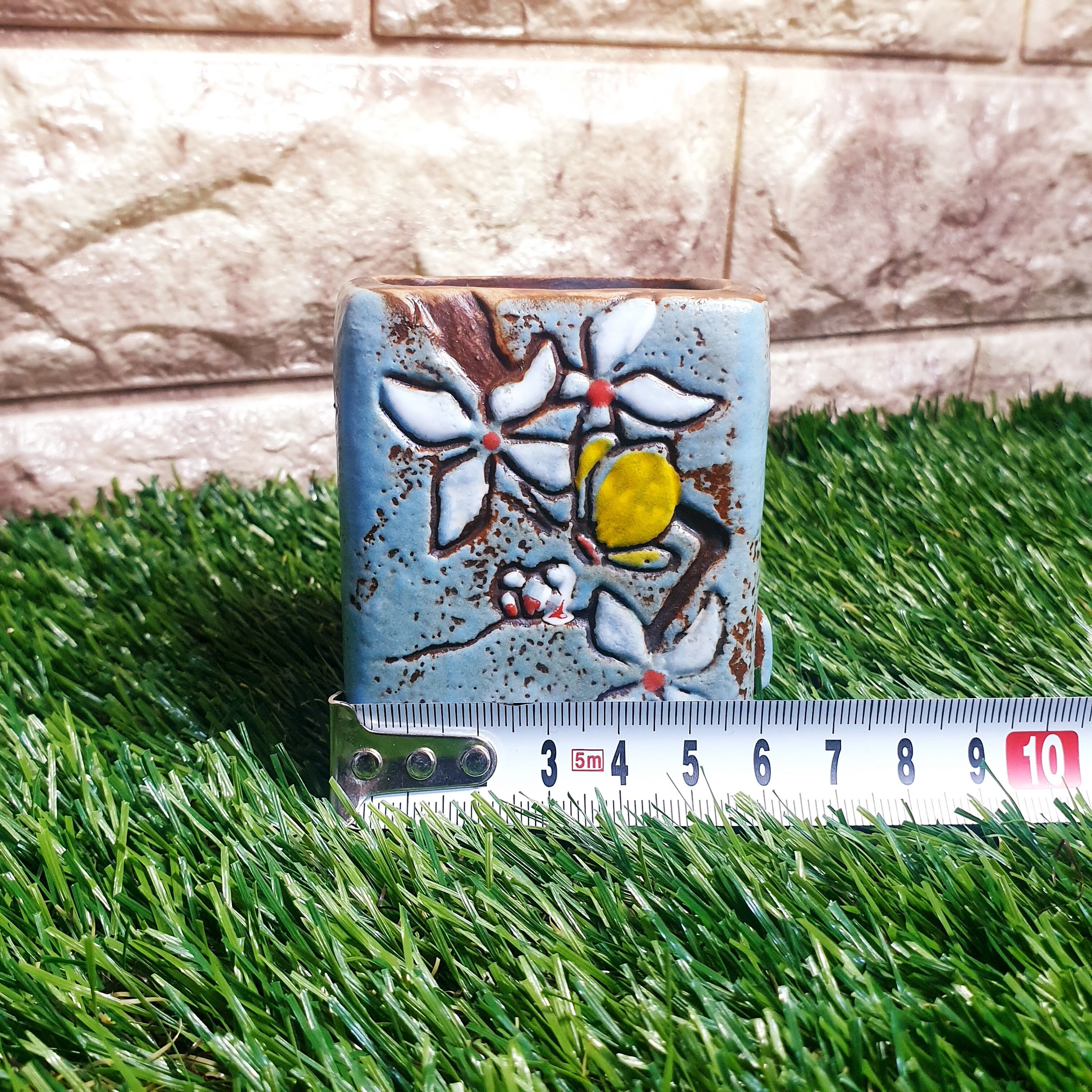 多肉ポット 植木鉢 小物入れに♡韓国発 和風花と蝶々ポット 水色