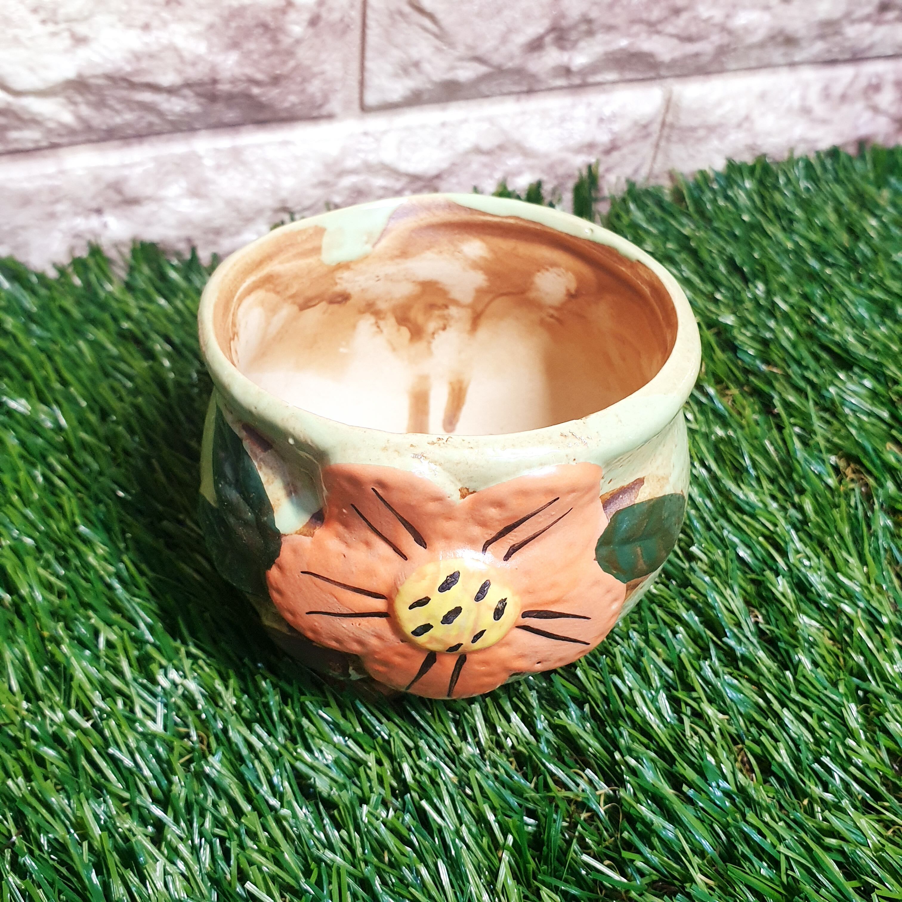 ワンポイントの一輪花が可愛い、丸型ポットです♪