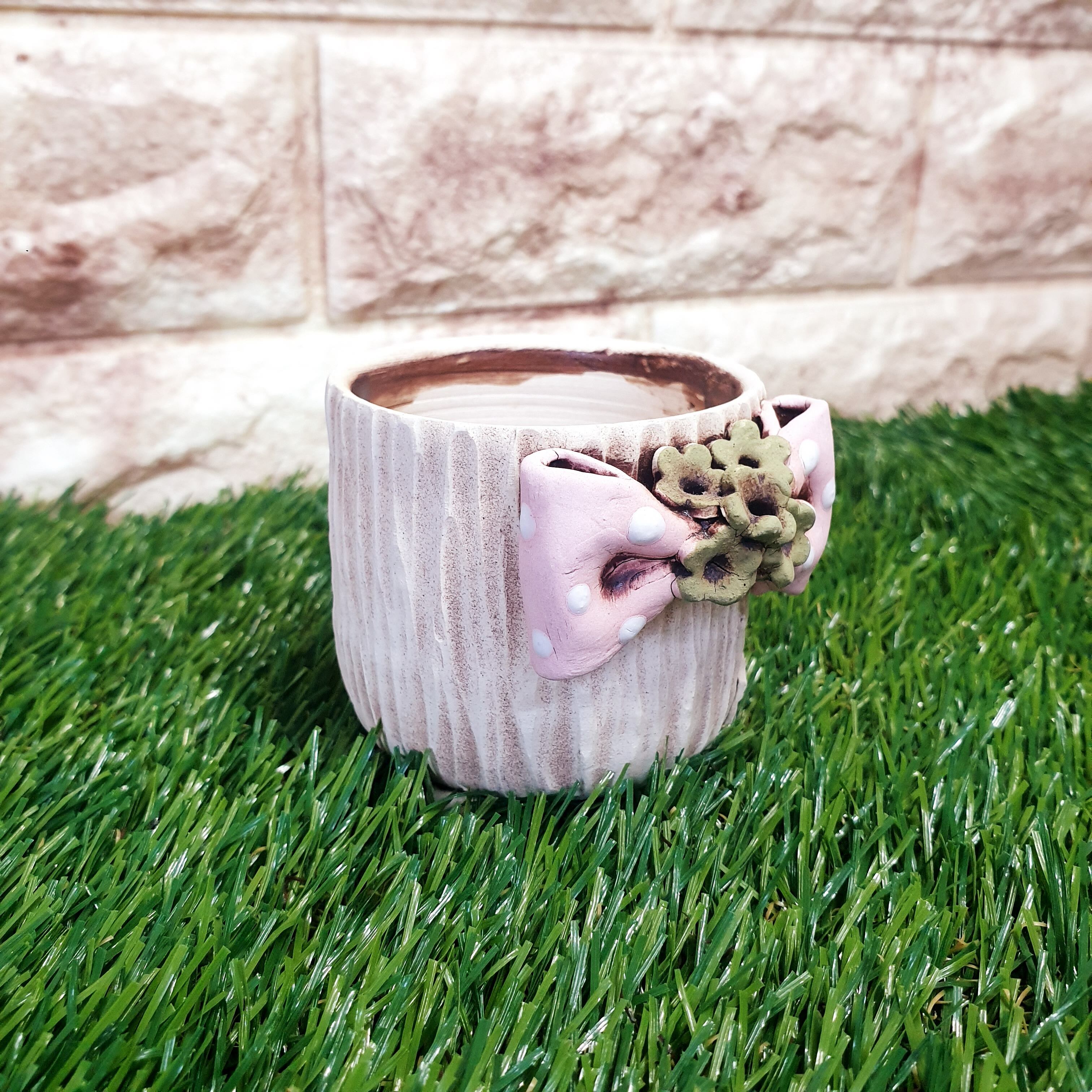 インテリアにも◎♪韓国発 立体ドット柄リボンポット ピンクリボン