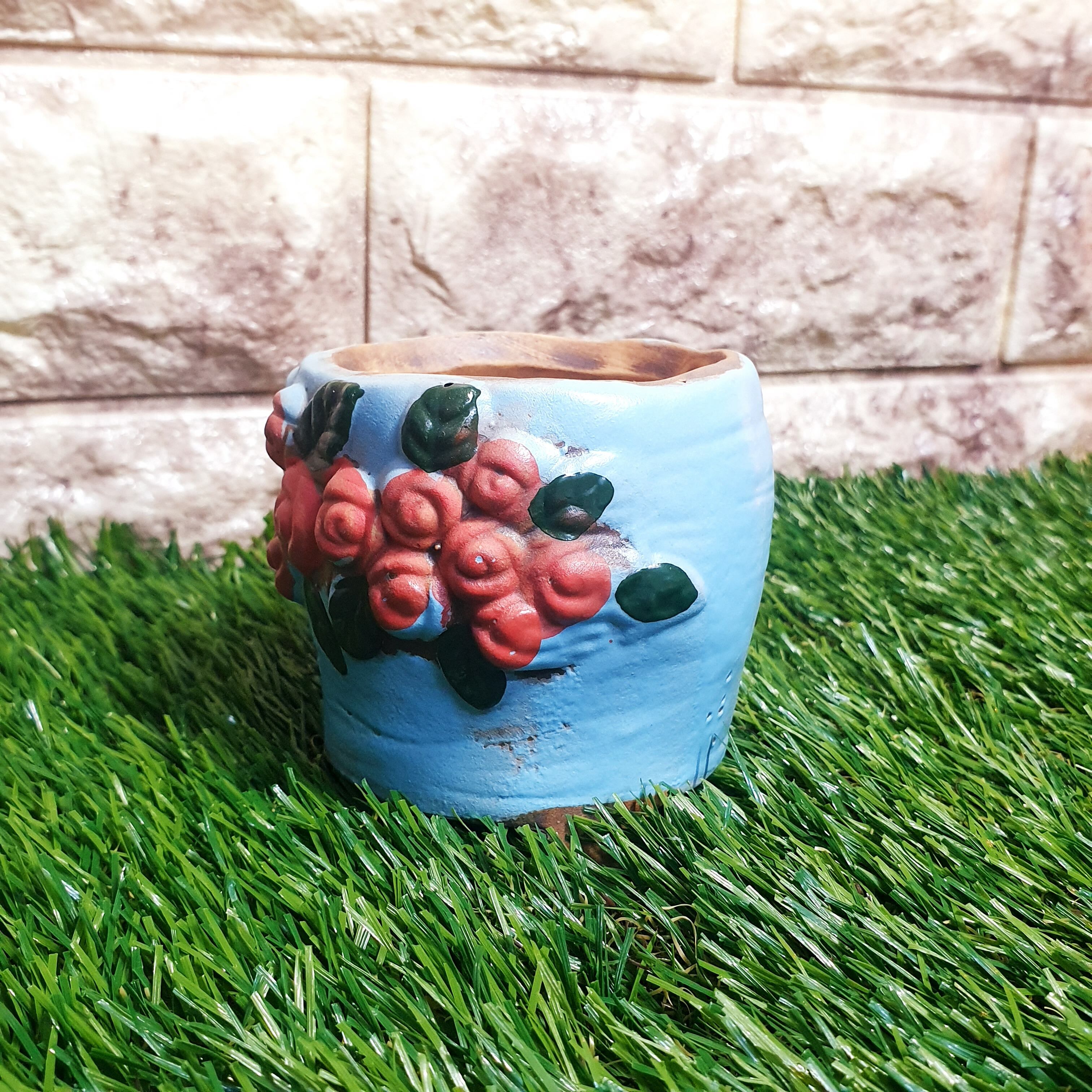 大人クラシックに★バラ柄ポット 水色
