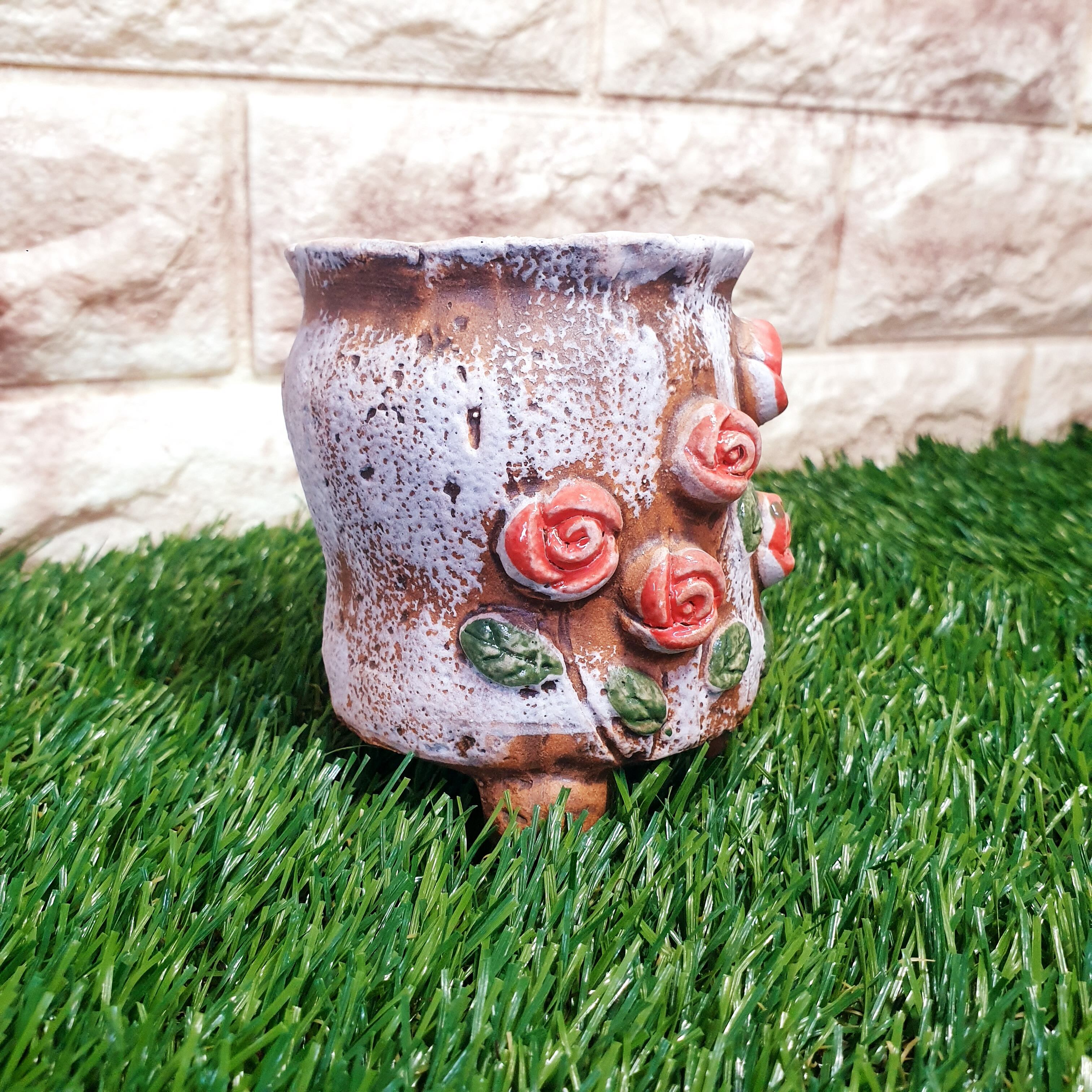 多肉の寄せ植えに◎韓国発 大き目花柄ポット バラ園