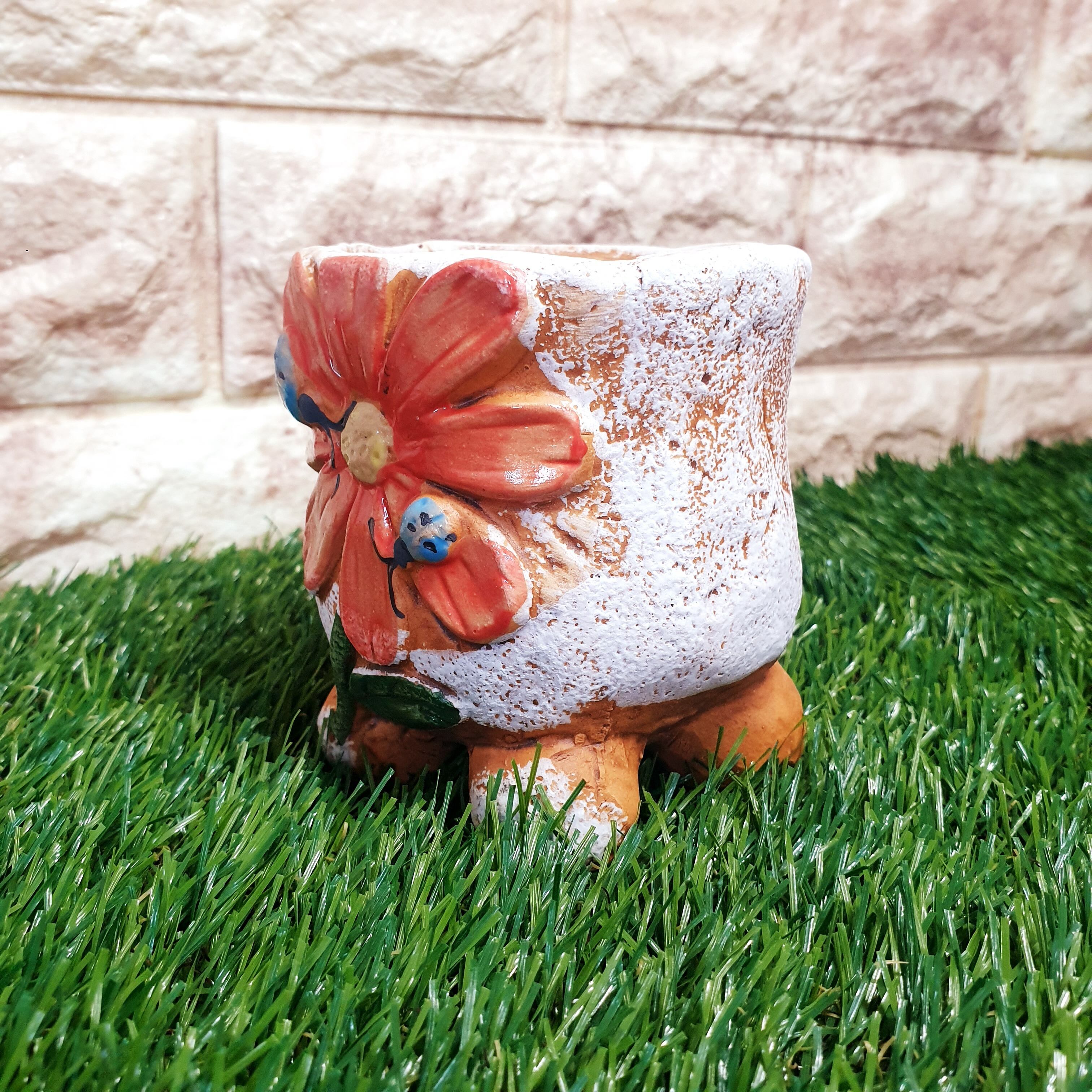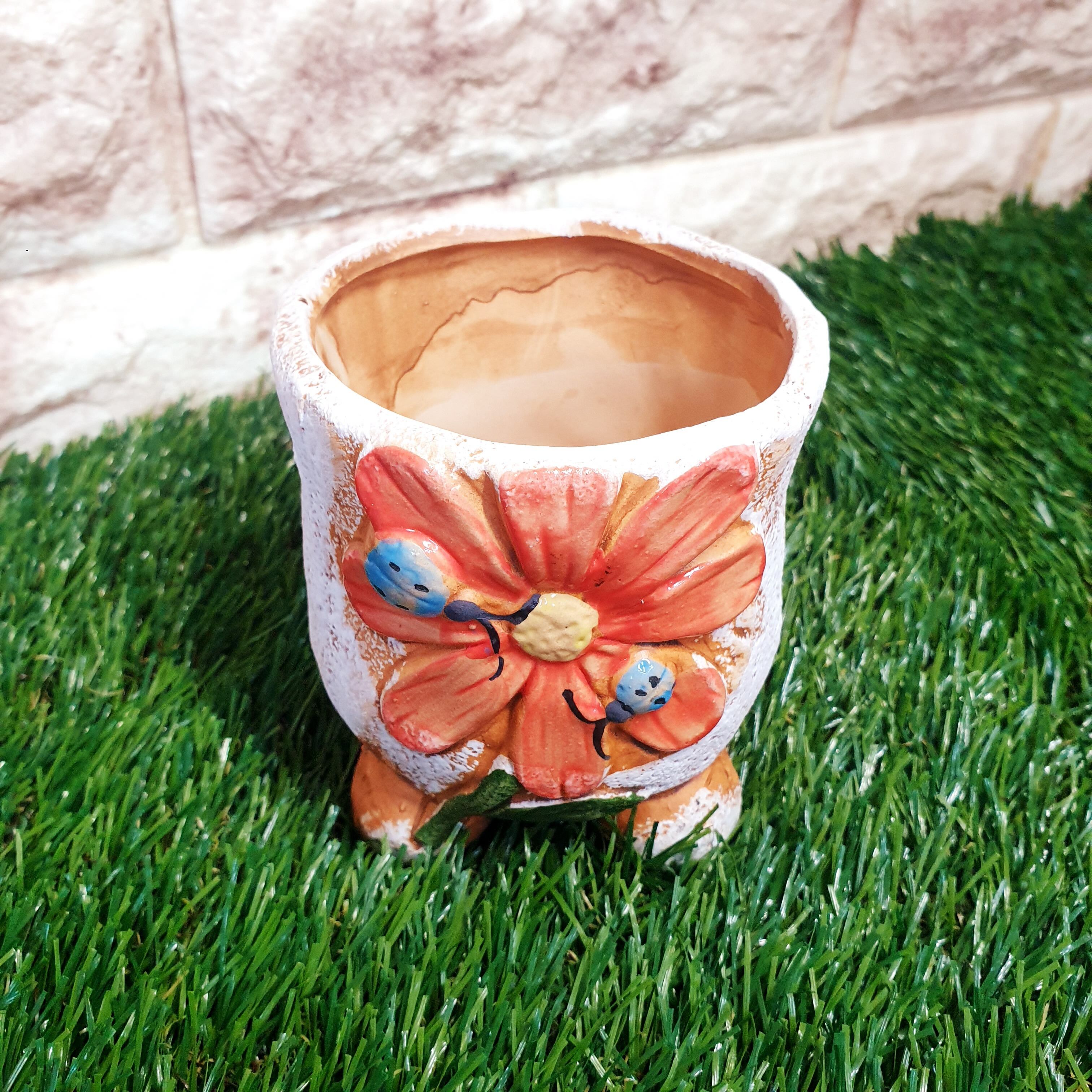 多肉の寄せ植えに◎韓国発 大き目花柄ポット マーガレット×てんとう虫