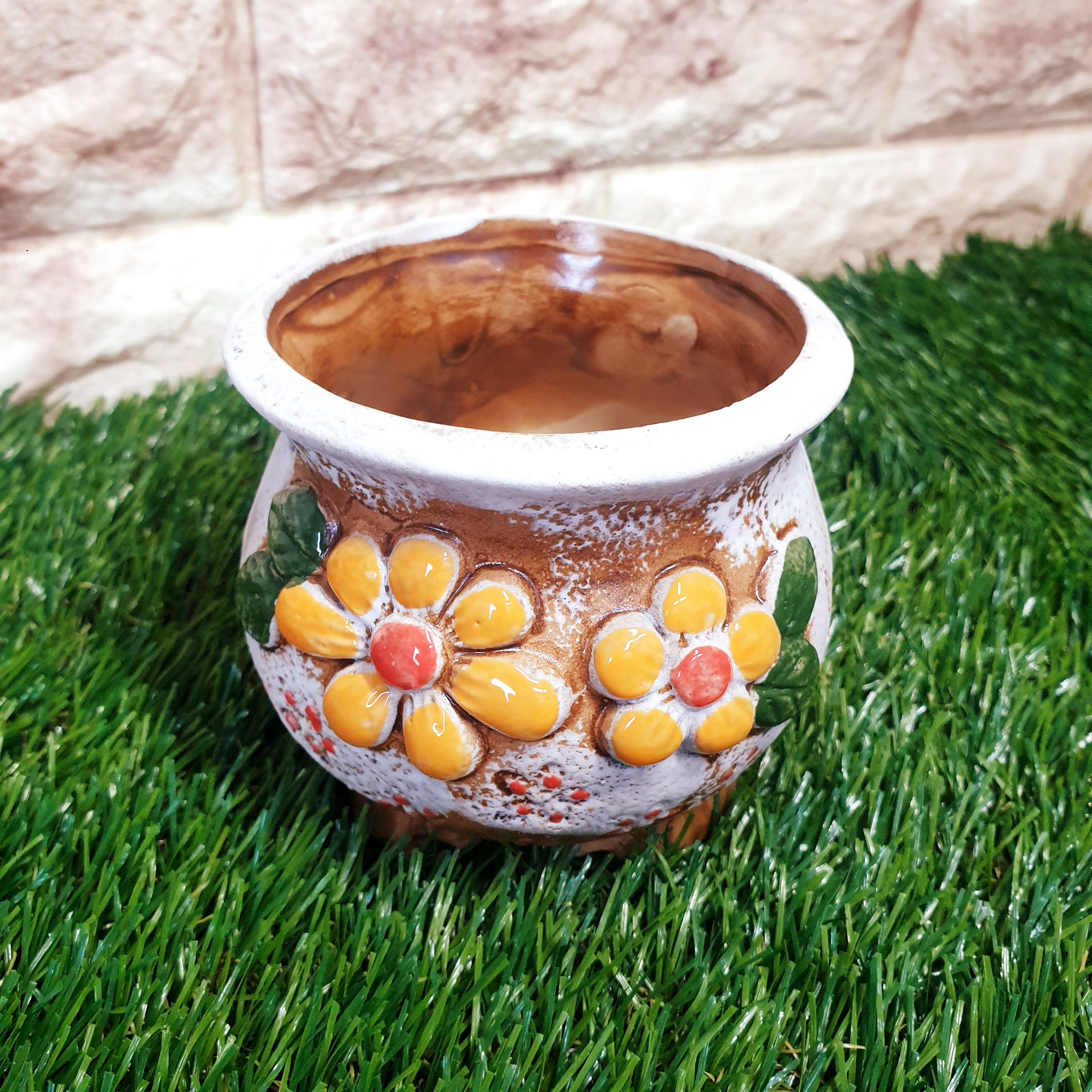 多肉の寄せ植えに◎韓国発 大き目花柄ポット 二輪黄色花