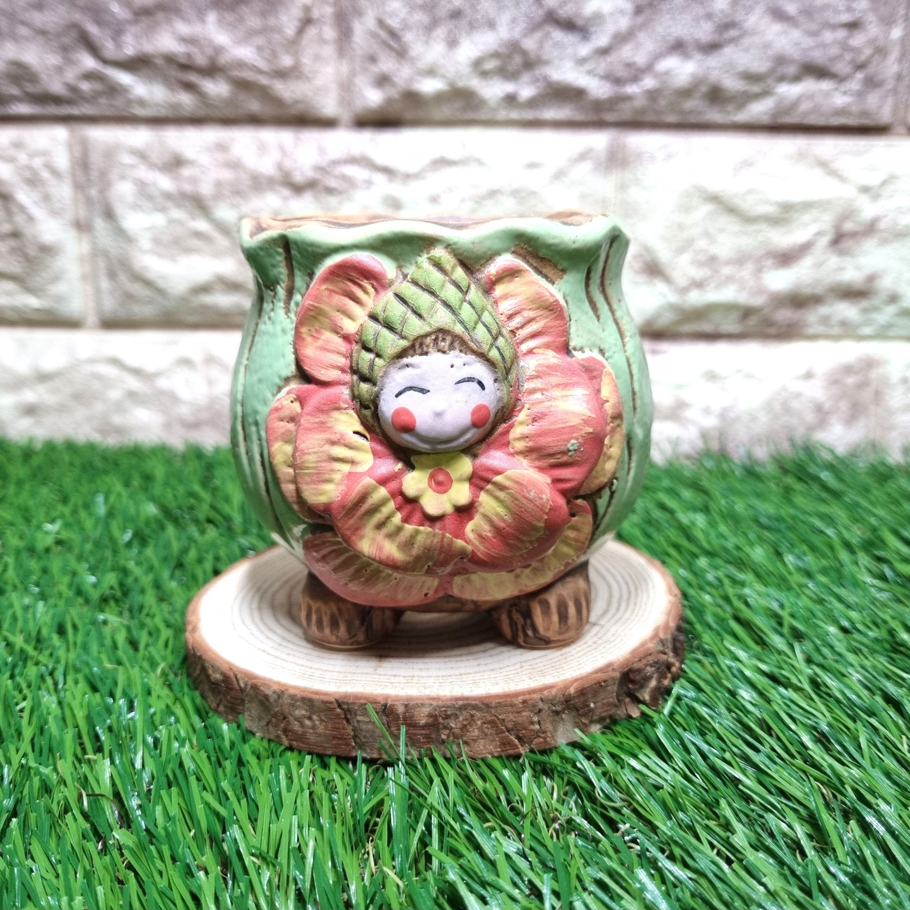 多肉ポット 植木鉢に最適♪一輪花×妖精ポット 黄緑