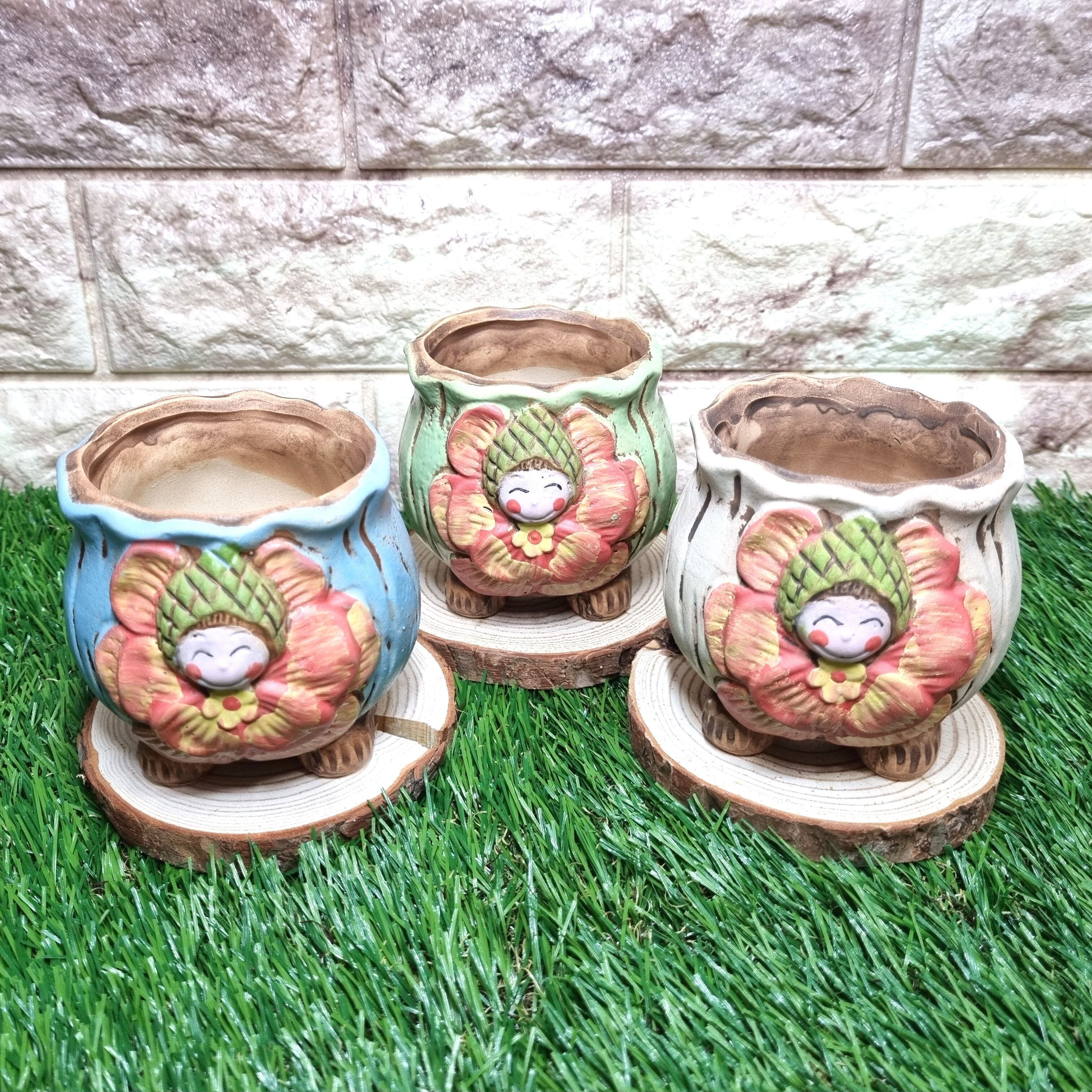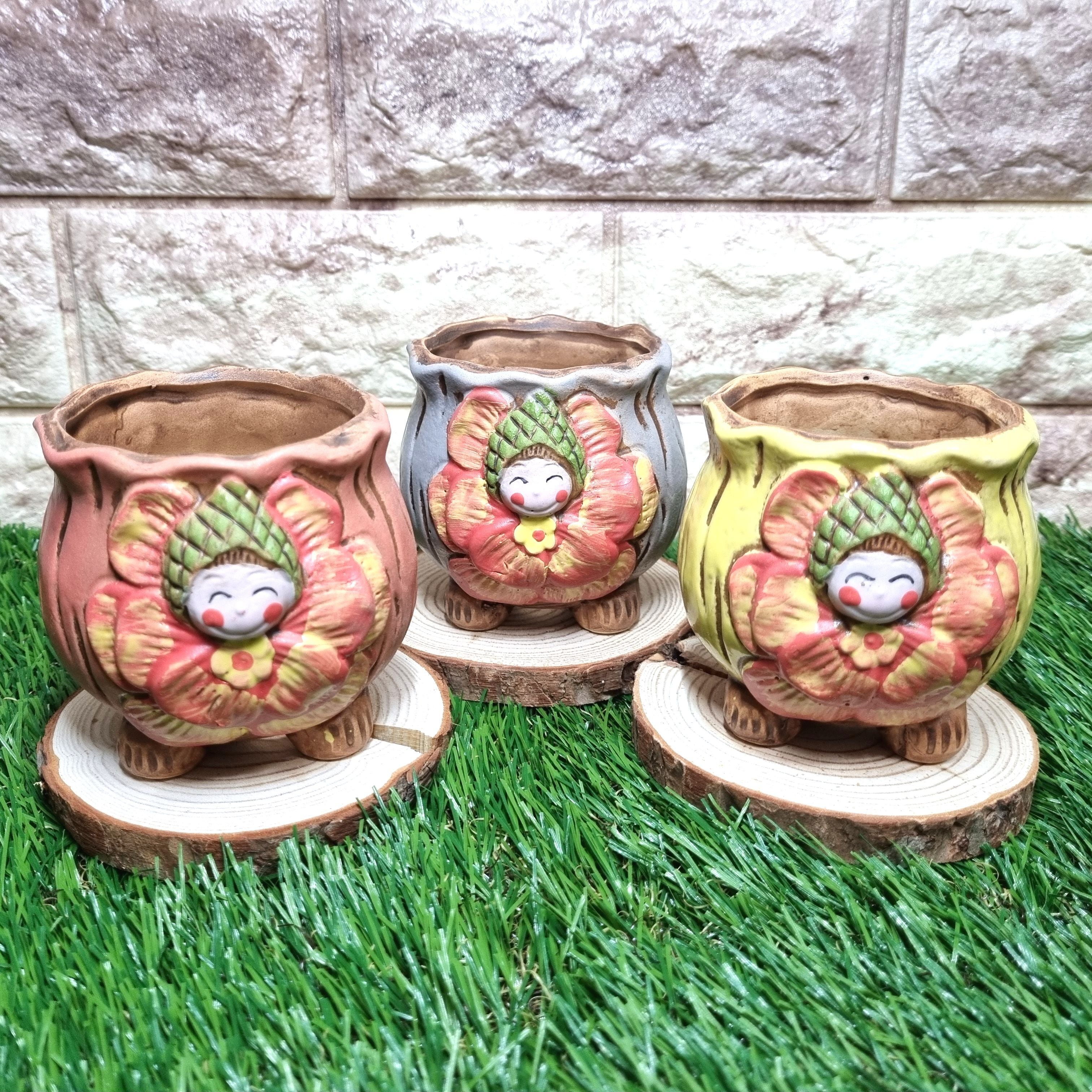 花咲く妖精が可愛い丸型ポット、お得なランダム3色セットです♪
